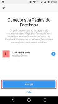 6 – Escolha a página que deseja conectar e toque em Avançar