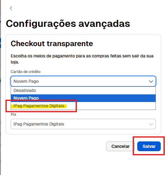 - Acesse a seção "Configurações avançadas" no painel do iPag.