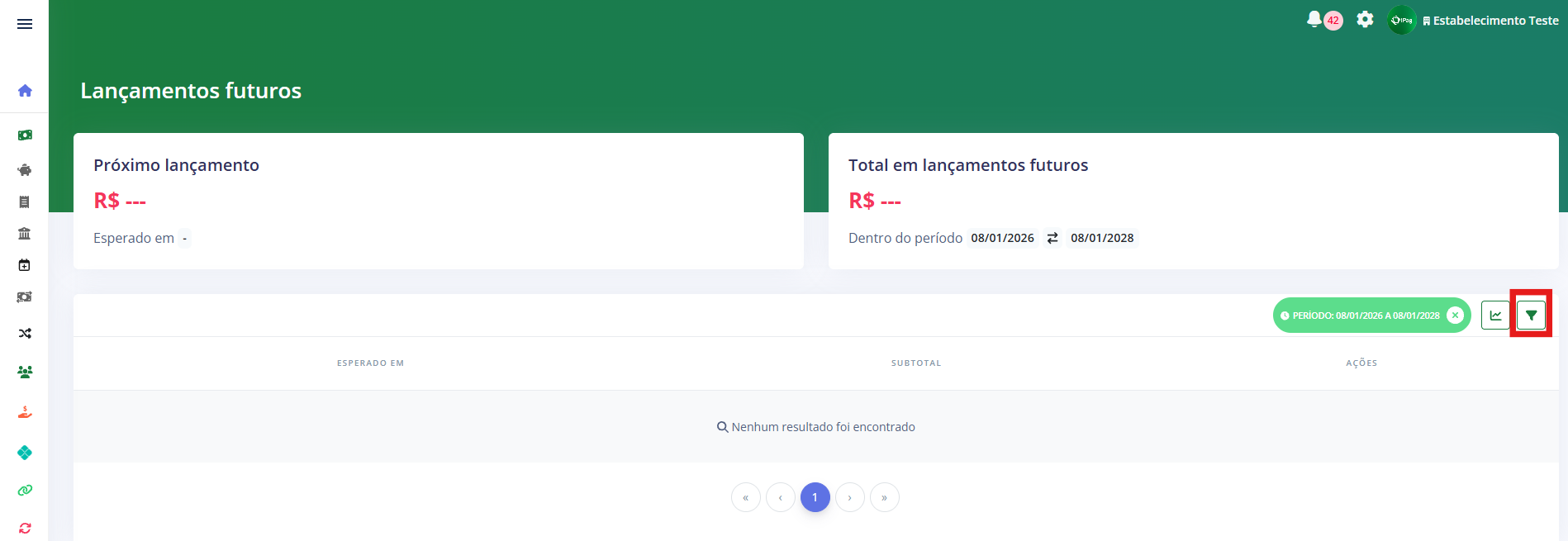 - Defina um período desejado para baixar o relatório, selecionando o ícone de funil, segue abaixo: