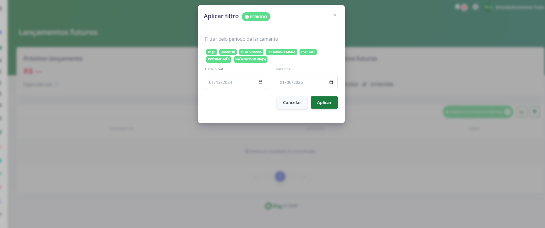 - Defina um período desejado para baixar o relatório, e selecione a opção "APLICAR".
