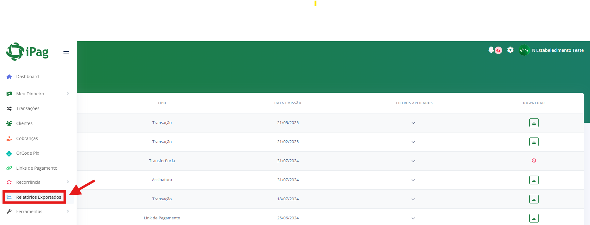 - Logo após realizar esse passo a passo, o relatório de lançamentos futuros estará disponível na opção "Relatórios Exportados", para baixar será necessário clicar na opção de "Download" segue abaixo: